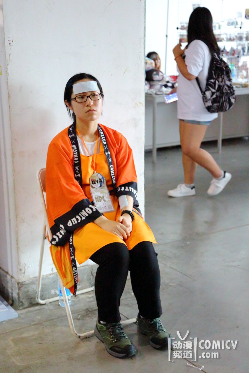 看上去是一位刚换班的NPC靠在座椅上,会场一天高强度的工作已令其显出疲态。动漫情报&镜背社记者 寒羽信 摄