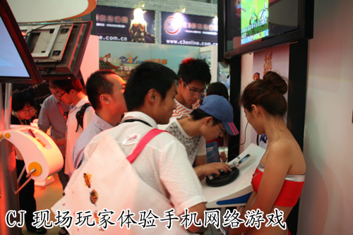 首次出现在Chinajoy展会的‘手机网游专区’,引发了众多玩家的好奇,纷纷涌向展台前查看究竟。而在手机网游体验区,更是被玩家围得水泄不通。尽管手机网络游戏在国内的发展只有五年,还处于起步阶段,但是其质量却有了很大的提高。当很多玩家首次试玩了手机网游后,都表现出了惊讶的表情。