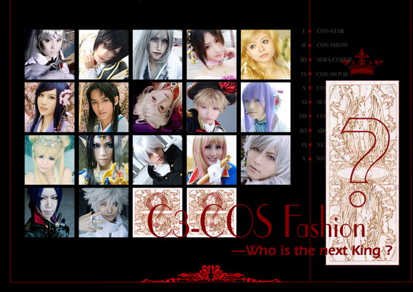 C、凡投稿参加Cover Coser大赛和C3摄影会征集活动的作品,经组委会允许,我们有可能会用于刊物中对封面大赛的宣传。