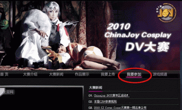 ¡¡¡¡£¨2£©µÇ¼Cosplay±¨Ãûϵͳ£¬µã»÷ “ÎÒÒª²Î¼Ó”£¬Ìá½»ÄãµÄ±¨ÃûÐÅÏ¢¡£Í¬Ê±ÏÂÔØ±¨Ãû±íhttp://www.chinajoy.net/upload/2010_CJDV.xls£¬²¢½«±¨Ãû±í·¢Ë͵½£ºcjdv2010@126.com¡£
