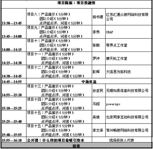 2012 ChinaJoy BTOB 投融资推介会入围名单及日程: