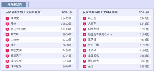 玩家最喜爱的十大网络游戏榜一直是兵家必争之地,本周榜单出现了戏剧性的变化,“画皮II”成为黑马赶超蝉联榜首数周的“九阴真经”,“剑仙情缘3”“传奇世界2”等游戏名次也有所提高。玩家最期待网络游戏榜中“黑金”坐稳前排,“龙剑”异军突起冲刺到次位。最佳境外网络游戏榜中“英雄联盟”稳扎稳打的博得本周第一的位子,而在最佳3D网络游戏榜中依旧是“九阴真经”领跑在前,后面的游戏可要再加把劲了。页游方面玩家最喜爱的网页游戏榜中“弹弹堂”“寻侠”“画皮2网页版”等游戏均展现了不俗的实力,一口气夺下了榜单的三甲,而在玩家最期待网页游戏榜中“大将军”“创世九州”等游戏也后来居上,随时有超过首位“萌三国”的可能。手游方面最佳单机游戏榜上变化不大,本周“捕鱼达人”以微弱的优势坐上榜首,最佳网络游戏榜上“博雅斗地主”一马当先,努力追赶的“逆战幻想”“仙境传说”等游戏还要再努努力了。本周金翎奖榜单变化颇大,各榜上黑马频频闪现,而本周又有哪些游戏遗憾淘汰呢,马上来公布第三轮淘汰赛被淘汰的游戏。