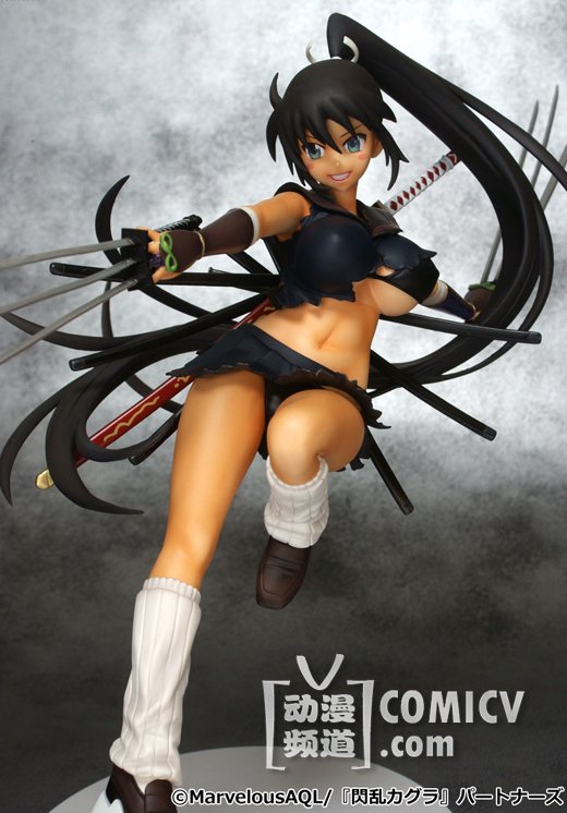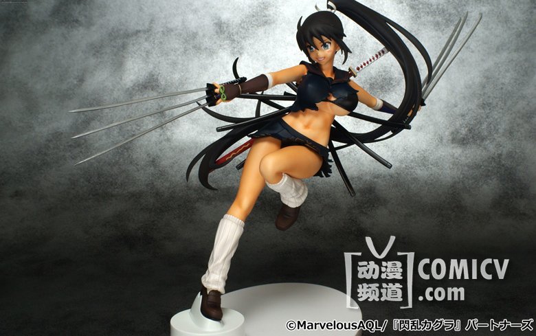 霸气侧漏~~~由3DS爆乳动作游戏《闪乱神乐:少女们的真影》改编的漫画『闪乱神舞』年底又出新手办,六刃在手呈飞跃而起的动态姿势,背面的刀鞘也一应俱全,但紧裹的大胸只是浮云,卸下装备后的背影才是真正亮点!
