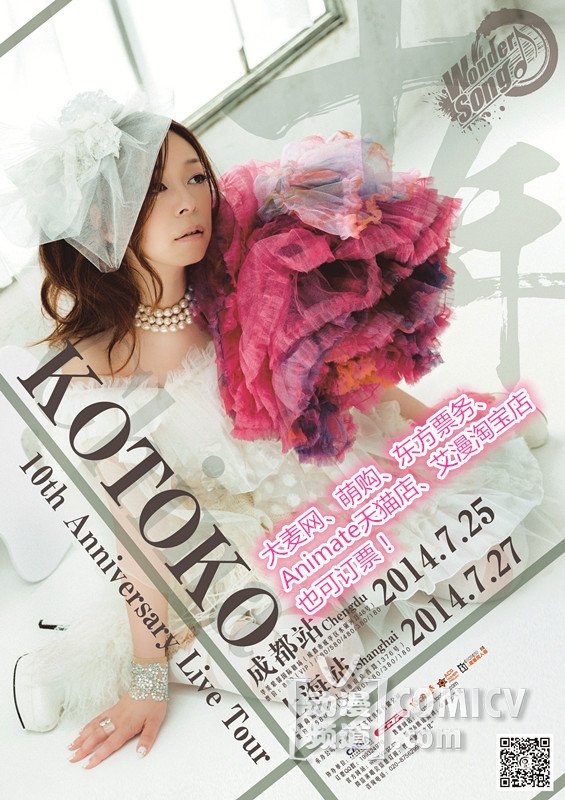 犹记得2012年KOTOKO首次踏足中国举办演唱会,广州站和上海站均座无虚席的盛况历历在目,多首经典的动画、游戏主题曲言犹在耳,让人难忘现场的热烈气氛。2014年KOTOKO的再次光临又会带给大家什么惊喜呢?首次踏足天府之国成都,又将带给她怎样的经历呢?我们拭目以待!