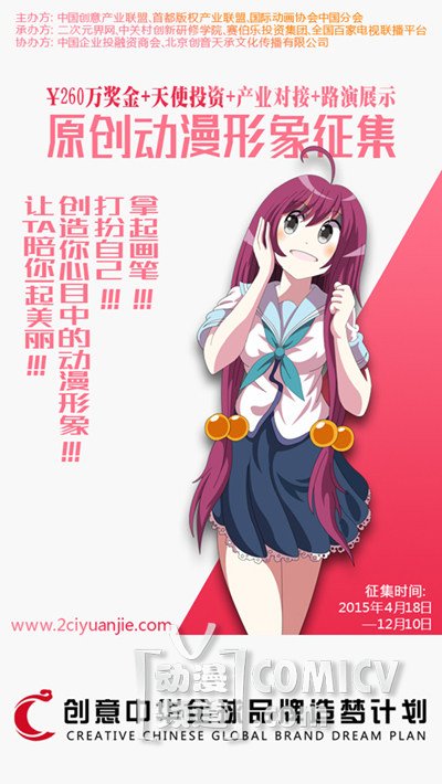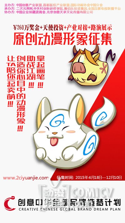 丸子:对于动漫行业的各位作者来讲,大家已经苦了这么多年了,互联网时代的到来,成就了大家,是你们发挥的时候了。你们来发挥,同时我们来协助你们,我们和你们一起来创业,帮助各位把你们的动漫作品推到一个更高的方向,帮助你们实现你们的动漫梦、产业梦。如果向更长远的方向看,我们帮助你们把你们的动漫作品和公司推上新三版,实现你们自己心中的梦想。你们心中的梦实现了,大家的梦就实现了,大家的动漫梦就实现了。所以,来参加创意中华造梦计划原创动漫形象征集活动吧!