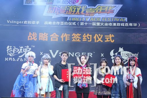 Vsinger品牌2016脚步不停,延续过去一年新增大量合作、授权的猛烈势头,在本届萤火虫展会上与全新合作伙伴“三分妄想”、“御魂社”联手,举行了隆重的战略合作签约仪式。