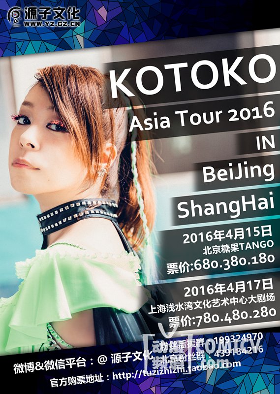在2012年和2014年两度来华,多次掀起动漫迷追捧狂潮的二次元电音歌姬KOTOKO将在今年4月与大家如约再见!<Face of Fact>、<shooting star>、<re-sublimity>等多首歌曲将唱响北京上海两地!