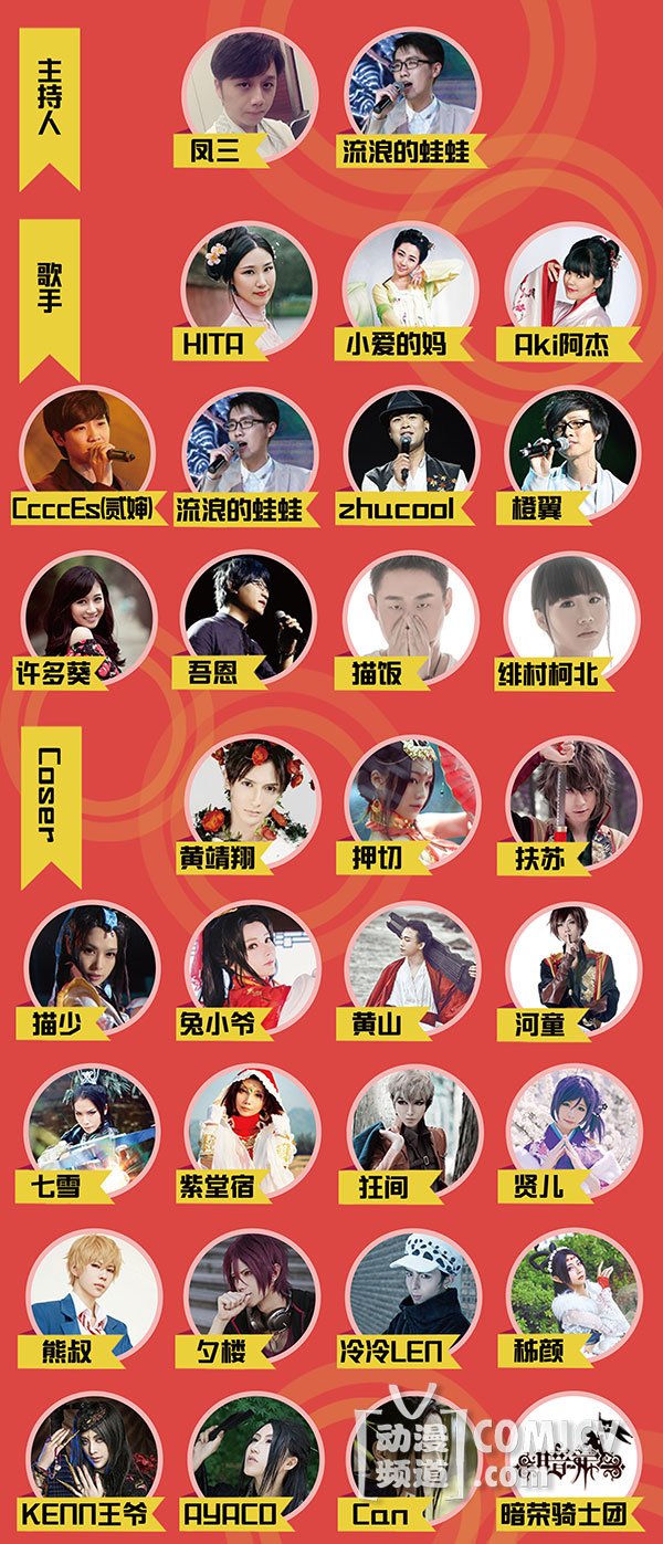 人气Coser:河童、黄靖翔、押切、扶苏、猫少、兔小爷、七雪、紫堂宿、熊叔、狂间、夕楼、冷冷LEN、贤儿、秭颜、KENN王爷、AYACO、CAN、暗荣骑士团。