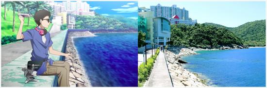 现实中从山上往下看“偷情小径“,是完全领略不到身在其中的幽秘心跳的,不过这一片面向东方海面的景观,在日出的时候应该和动画里一样美不胜收!