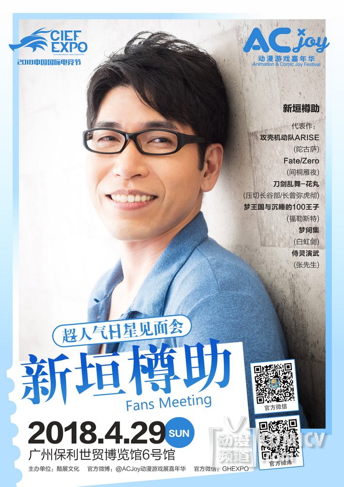 新垣樽助的到来想必也会给粉丝们带来不少福利,除了“标配”的见面会环节,在现场还有什么惊喜呢?第一手采访?亲笔签名?现场配音秀?面对面亲密互动?更多?AC-Joy现场自有分晓。