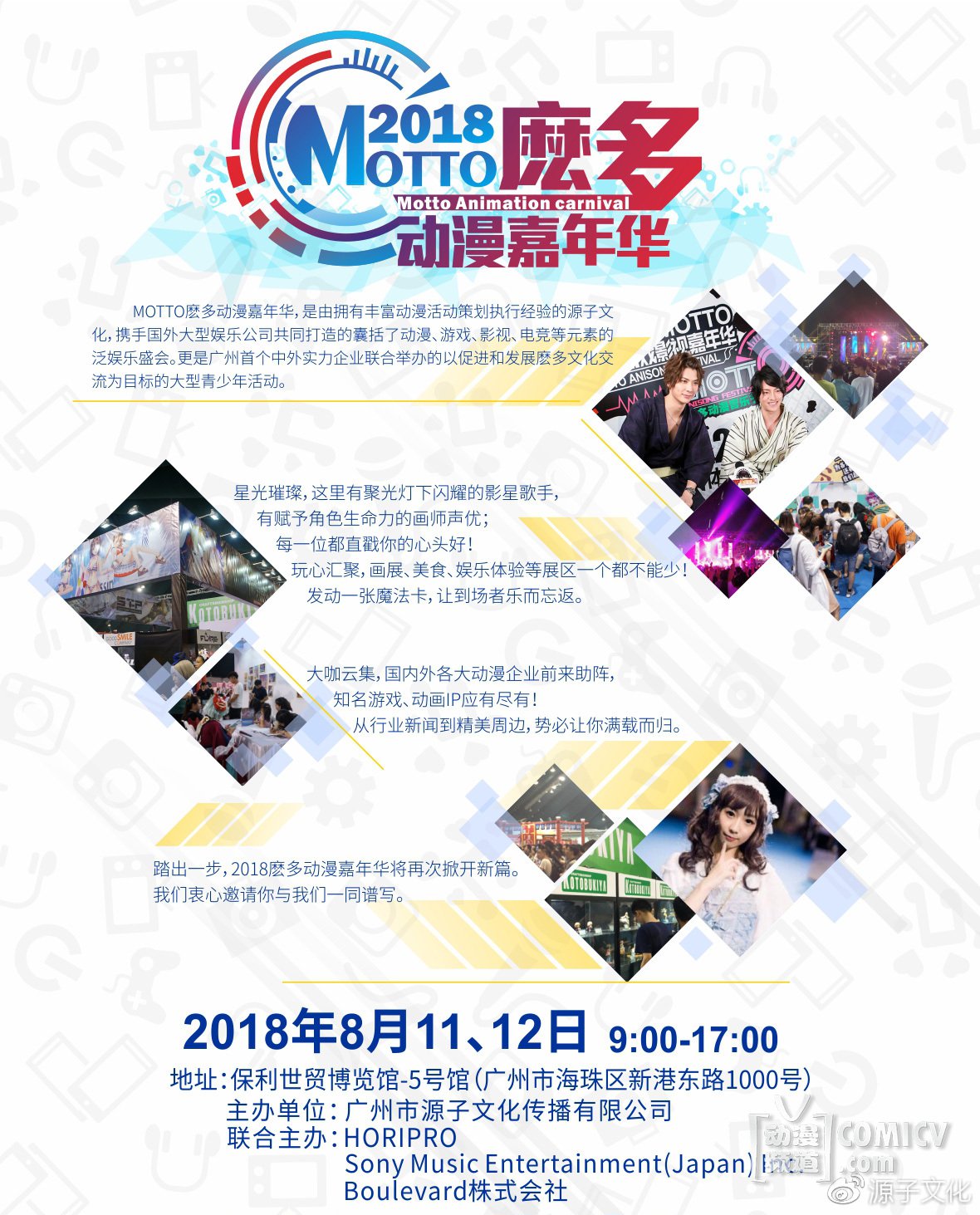 2017年,华南地区首个中日联办的动漫展——麽多动漫嘉年华&动漫音乐节在广州首度亮相。这场属于所有动漫爱好者的大型盛事开拓了一个全新的活动品牌。包括声优、歌手、插画家、脚本家、演员在内的二十多组日本艺人的联袂登场让粉丝们大呼过瘾。就在今年,麽多动漫嘉年华将于8月11-12日在广州保利世贸博览馆5号馆隆重举办,为了带给爱好者更丰富的活动,更惊喜的内容,麽多今年进一步扩展了主办单位的阵容,四大主办方正式对外解锁亮出身份!