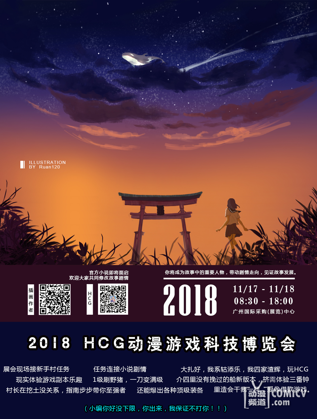 从2010年第一届举办至今(中途暂停几年),HCG一直都以大伙们玩得开心为前提推出各类欢乐玩法,这次加入全新新手村任务卡,推出展会副本,让观众们都好像进入了现实版的游戏世界一样,遇到众多NPC领取发放新任务,召集足够的经验和级数,最后挑战终极BOSS任务,刷取终极装备大奖(大奖就是七周年纪念套装和萌娘实体手办),快来继续跟我们一起嗨皮吧。